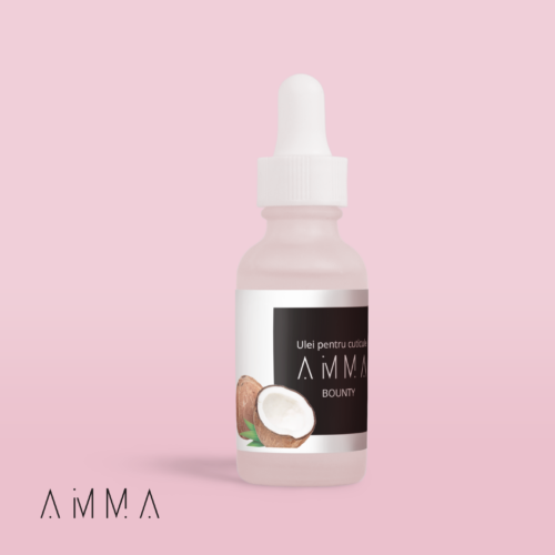AMMA ulei tratament pentru cuticule cu extract din nuca de cocos si ciocolata. Are un miros placut, delicios putem spune si hidrateaza in profunzime datorita formulei imbogatite vitamina E si vitamina A.