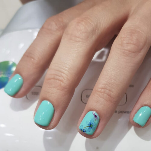 Aplicați un strat subțire de culoare și uscați timp de 30 sec (60 sec pentru culori închise) în lampă LED sau 2 min în lampă UV. Repetați acest pas pentru o mai bună acoperire.